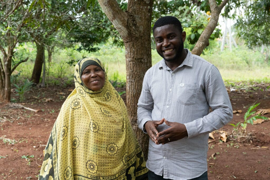 Sauma Othman with Ali Said, Community Forest Pemba’s Spice Forest Officer. After attending the Community Forests’ Farmer Field School, Sauma started to grow cardamom as a source of income to supplement the sweet yam grown by her family in a nearby larger field!